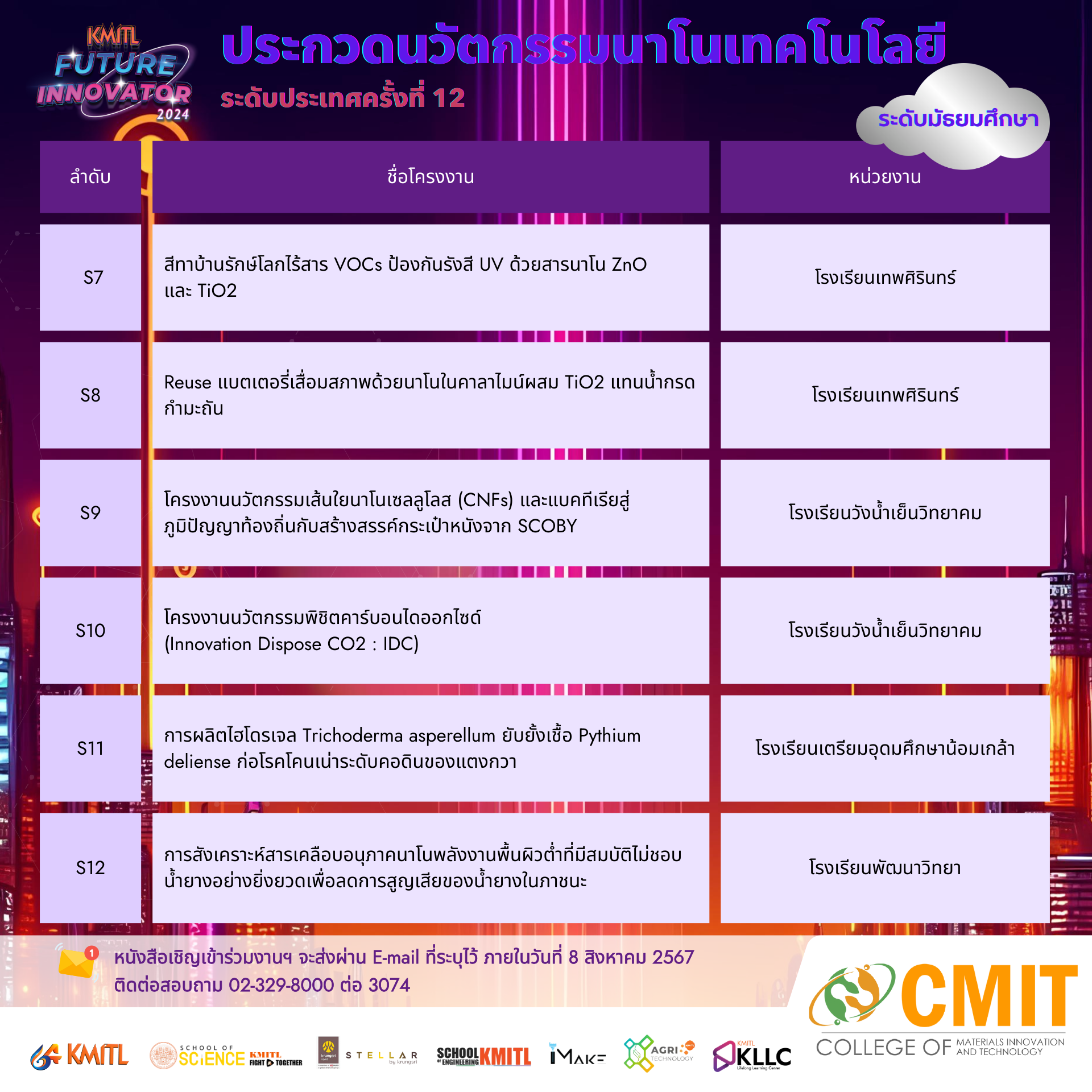 รายชื่อการประกวดนวัตกรรมนาโนเทคโนโลยีระดับประเทศ ครั้งที่ 12